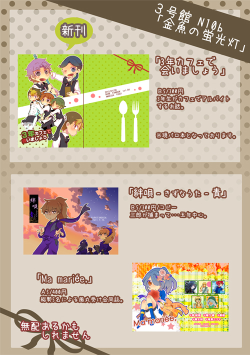 個人サークル「金魚の蛍光灯」お知らせブログです。